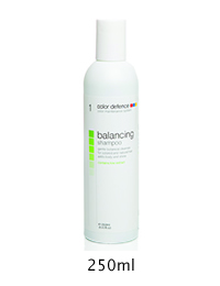 Balancing shampoo: low pH shampoo for coloured hair; cleanses and prepares the hair to take up tone evenly by creating a uniform negative electrical charge from roots to ends.